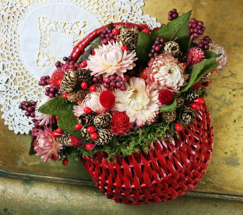 Red Hanging Dried Flowers : Handmade Shabby Chic Holiday Christmas Dried Flower Arrangement Wall Hanging / Put your dried flowers on display in your home or use them as a craft.